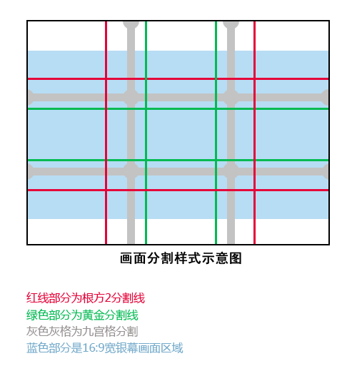1、在傳統(tǒng)的平而構成當中,對視覺中心最保守的辦法是“九官格”法,這個在東西方的理論中都有論述,包括現(xiàn)任相機的智能取景對焦功能也是參照此不變法則: