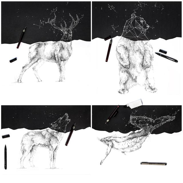 全手繪菜單,黑白可分截翻閱,拼合起來則是各種不同的動物形象,細節(jié)之處也是一點點描上去的非常到位~