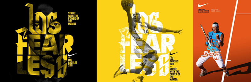 輔助色可以是一個(gè)色彩系列,這樣的方式適合于色相不同的系列廣告。從本頁(yè)的圖例中,可看到耐克這個(gè)系列的廣告中采用了系列輔助色,它們?cè)谏嗜兀鞫取⒓兌?、色相)中的一個(gè)要素(純度)方面較為一致,其余兩個(gè)要素則差異較大。